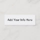 Carte de visite, taille : États-Unis : 8.9 cm x 5.1 cm, papier : Standard Semi-brillant, coins : Carré