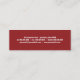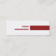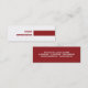 Donnez une sensation contemporaine avec ce carte de visite maigre simple de rouge cramoisi. Copies rouge-foncé d'un panneau à côté d'une raison sociale. La même couleur compose l'arrière - plan de l'inverse pour compenser l'information de contact. Un carte de visite souple qui célèbre la simplicité et l'amélioration de la typographie experte et des graphiques simples. Disponible dans des couleurs alternatives.