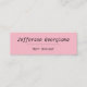 Ces caractéristiques de conception simples et simples de carte de visite un pâle - arrière - plan rose, et une rangée des tirets. Elle pourrait être employée par un professionnel tel qu'un apprêteur, un styliste en coiffure, un styliste ou un coiffeur de cheveux. Les détails de nom, de profession et de contact peuvent être personnalisés.
