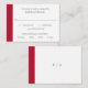 Mini carte RSVP Mariage moderne avec une bande rouge audacieuse le long du côté gauche. Le modèle est composé d'une police serif classique, d'une police serif moderne et d'un script élégant. Le dos a une bande le long du côté gauche avec votre monogramme. Ce design simple et minimaliste est parfait pour un mariage traditionnel et formel.