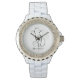 Chat noir minimaliste sur une montre arrière - plan blanche. Personnalisez cette montre élégante avec votre nom.