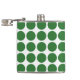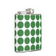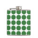 Cute et tendance Mini Flask Pois. Ce design présente des pois en petits cercles en vert et blanc. Un texte peut être ajouté à cette conception pour lui donner une touche personnelle.