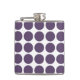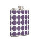Cute et tendance Mini Flask Pois. Ce design est composé de pois en petit cercle en violet et blanc. Un texte peut être ajouté à cette conception pour lui donner une touche personnelle.