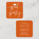 Ces invitations à la remise des diplômes sont de petite taille mais grandes sur la simplicité stylisée. Annoncez la réussite du diplômé et la famille et les amis invitations à célébrer avec les élégantes mini-remise des diplômes de la fête orange et blanc de l'enceinte. La petite taille du carte de visite carré les rend faciles à insérer avec les annonces de remise de diplômes ou à distribuer à la famille et aux amis (ils ne sont pas fournis avec des enveloppes.) Vendu en paquets à un prix abordable, ces inserts offrent une option chic pour rester dans un budget raisonnable. Le libellé de ce modèle est simple à personnaliser, et les couleurs peuvent être customisées à l'aide de l'outil de design Zazzle. Le design moderne orange et blanc présente une calligraphie manuscrite avec un casquette en carton de mortier et une élégante typographie classique. Cette carte d'invitation à l'obtention d'un diplôme est une façon unique d'annoncer une fête spéciale. Félicitations au diplômé !