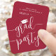 Ces invitations à la remise des diplômes sont de petite taille mais grandes sur la simplicité stylisée. Annoncez la réussite du diplômé et la famille et les amis invitations à célébrer avec les élégantes cartes rouges et blanches de la mini-fête de remise des diplômes. La petite taille du carte de visite carré les rend faciles à insérer avec les annonces de remise de diplômes ou à distribuer à la famille et aux amis (ils ne sont pas fournis avec des enveloppes.) Vendu en paquets à un prix abordable, ces inserts offrent une option chic pour rester dans un budget raisonnable. Le libellé de ce modèle est simple à personnaliser, et les couleurs peuvent être customisées à l'aide de l'outil de design Zazzle. Le design moderne rouge et blanc présente une calligraphie manuscrite avec un casquette en carton de mortier et une élégante typographie classique. Cette carte d'invitation à l'obtention d'un diplôme est une façon unique d'annoncer une fête spéciale. Félicitations au diplômé !