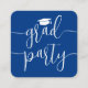 Ces invitations à la remise des diplômes sont de petite taille mais grandes sur la simplicité stylisée. Annoncez la réussite du diplômé et la famille et les amis invitations à célébrer avec les élégantes mini-remise des diplômes les cartes royales bleu et blanc. La petite taille du carte de visite carré les rend faciles à insérer avec les annonces de remise de diplômes ou à distribuer à la famille et aux amis (ils ne sont pas fournis avec des enveloppes.) Vendu en paquets à un prix abordable, ces inserts offrent une option chic pour rester dans un budget raisonnable. Le libellé de ce modèle est simple à personnaliser, et les couleurs peuvent être customisées à l'aide de l'outil de design Zazzle. Le design royal moderne bleu et blanc présente une calligraphie manuscrite avec un casquette en carton de mortier et une élégante typographie classique. Cette carte d'invitation à l'obtention d'un diplôme est une façon unique d'annoncer une fête spéciale. Félicitations au diplômé !
