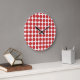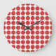 Mini horloge murale mignonne et à la mode de pois. Pois de ce cercle de caractéristiques de conception petit en rouge et blanc. Le texte peut être ajouté à cette conception pour lui donner un contact personnel.