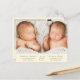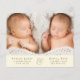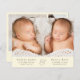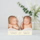 Petit budget pastel jaune garçon ou fille jumeaux photo collage faire-part de naissance avec leur photo, noms, dates d'arrivée et statistiques de naissance dans une typographie simple et moderne. Au contraire, ajoutez trois photos supplémentaires et votre message "accueilli par".