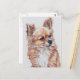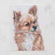 Cette carte postale présente une reproduction de mon dessin original au crayon coloré d'un chihuahua aux cheveux longs.