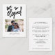Une charmante taille MINI 3,5" x 2,5" S'IL VOUS PLAÎT NOTER si vous êtes aux États-Unis, cette taille est plus petite que le minimum requis pour l'affranchissement américain. Veuillez donc choisir la taille 3,5" x 5" si vous avez l'intention de les envoyer (ou l'alternative budget 4,5 x 5,6" dans cette collection). Nous Avons Été Invités Par Photo Faire-part. Élégant script set We Eloped est sur le devant en noir, sous lequel ajouter votre photo préférée de votre mariage, et personnaliser vos noms, la date et l'emplacement de votre cérémonie. Sur le dos, personnalisez facilement avec vos détails de faire-part et d'invitation.
