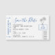 Un mignon petit aimant de carte d'embarquement que vos invités peuvent coller sur le réfrigérateur pour leur rappeler la date de votre mariage de plage de destination avec l'atmosphère amusante et élégante thème de voyage. Les palmiers argentés Faux accèdent au billet d'avion mini avec vos noms, date du mariage et destination, ainsi que des détails authentiques tels qu'un code à barres, un coffre d'assignation de siège et des flèches d'alimentation.