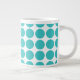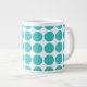 Mignonne et tendance Mini Pois Jumbo Mug. Ce design est composé de pois en petits cercles en bleu turquoise et blanc. Un texte peut être ajouté à cette conception pour lui donner une touche personnelle.