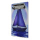 Ce mini-porte - bloc est décoré d'une aquarelle fantaisie peinte d'un voilier bleu.