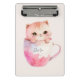 Mini Porte-bloc Chat blanc-rose mignonne dans une tasse de thé (2)