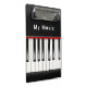 touches piano noir et blanc avec garniture rouge Texte peut être modifié ou supprimé.