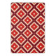 Un motif artistique continu présentant des formes géométriques rouges, orange et beige formant des motifs d'étoiles interconnectées.