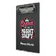 Keep your charts organized and your shift under control! This durable Queen of the Night Shift clipboard is the ultimate tool for healthcare professionals who rule the night. Featuring a vibrant pink crown, hearts, and a heartbeat graphic on a sleek black background, it’s both practical and stylish. Perfect for RNs, doctors, and nursing students to use during rounds or at the nurse's station. High-quality, lightweight, and fully customizable with your name or department—never lose your clipboard again!