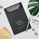 Island chic porte - bloc personnalisé dispose de deux lignes de texte personnalisé en lettrage blanc classique, sur un arrière - plan noir doux orné d'une illustration de coquillages tropicaux en faux feuille d'argent. Le design se répète à l'envers. Veuillez noter que ce porte - bloc est une mini-taille; version pleine taille également disponible dans notre collection Conch Shell.