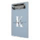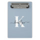 Ce porte - bloc simple et élégant bleu poussiéreux de 9 x 6 mini avec votre prénom dans une police de script tendance en noir et votre première initiale dans une police de casquette moderne en blanc est parfait pour vous. C'est design, tendance et pourtant très classique. Il sera utile dans tant de situations. Parfait pour le travail, la maison, l'école.