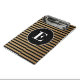 Elégant et élégant porte - bloc rayé noir et or personnalisé avec votre monogramme initial dans une police serif moderne. Idéal pour la maison, l'école ou le bureau. Contient vos papiers ou documents fermement en place et peut devenir la surface d'écriture parfaite sur le coup lorsque vous n'êtes pas à votre bureau.