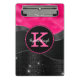Ce design glamour élégant, tendance, unique, présente un motif cool, abstrait stratifié de vagues en magenta rose chaud fuchsia, noir et gris dans des textures contrastées. Au centre sur le dessus du motif sur le devant est un grand monogramme rose vif personnalisable dans le centre dans la typographie serif populaire avec un nom personnalisable en blanc dans le script populaire avec un look lettré à la main. Derrière le monogramme et le nom est un cercle noir bordé de points roses chauds et amusants. Vous pouvez personnaliser cet article en modifiant le monogramme et le nom dans le modèle de produit.