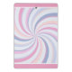 Un motif tourbillon dans une palette de couleurs rose, bleu et pêche.