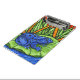 Ce mini-porte - bloc a ma peinture acrylique originale d'une grenouille bleu vif et éclatante avec des taches noires sur un tapis vert dans l'eau entourée de hautes herbes vertes et de roseaux jaunes.