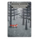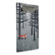 Un renard rouge sauvage solitaire se dresse sous les pins dans une forêt sombre. Pour la nature, la faune et les amoureux des animaux.