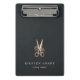 Porte - bloc personnalisé chic pour votre salon ou votre salon de coiffure dispose de deux lignes de texte personnalisé en lettrage blanc classique, sur un arrière - plan noir doux orné d'une paire de ciseaux fleuris en feuille de faux cuivre. Le design se répète à l'envers. Veuillez noter que ce porte - bloc est une mini-taille; version grandeur nature également disponible dans notre collection de salon Rose Gold Floral Scissors.