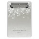 Le porte - bloc chic dispose de deux lignes de texte personnalisé en lettrage noir classique sur un arrière - plan gris argenté orné d'un éclat de lumières de livres blancs en haut. Le design se répète à l'envers. Veuillez noter que ce porte - bloc est une mini-taille; version grandeur nature également disponible dans notre collection Platinum Glow.