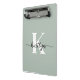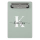 Ce porte - bloc simple et élégant de sauge vert 9 x 6 mini avec votre prénom dans une police de script tendance en noir et votre première initiale dans une police de casquette moderne en blanc est parfait pour vous. C'est design, tendance et pourtant très classique. Il sera utile dans tant de situations. Parfait pour le travail, la maison, l'école.