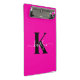 Ce porte - bloc simple et élégant rose chaud 9 x 6 mini avec votre prénom dans une police de script tendance en blanc tapé sur votre première initiale dans une police casquette moderne en noir est parfait pour vous. C'est design, tendance et pourtant très classique. Il sera utile dans tant de situations. Parfait pour le travail, la maison, l'école.