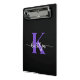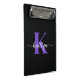 Ce porte - bloc simple et élégant noir 9 x 6 mini avec votre prénom dans une police de script tendance en blanc et votre première initiale dans une police de casquette moderne en violet est parfait pour vous. C'est design, tendance et pourtant très classique. Il sera utile dans tant de situations. Parfait pour le travail, la maison, l'école.