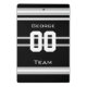 Noir, blanc et gris. Personnalisé avec nom,#, équipe, fan de sports porte - bloc d'équipe. Design par Sandy Closs. collège, rayures, athlète, esprit, entraîneur, enfants, équipes, filles, garçons, personnalisées, nouveauté, ado, joueur, ligue, softball, hommes, customisé, athlète, baseball, football, hayon, tailgating, jeu, ventilateur, basket-ball, blanc