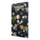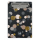 Un motif de confettis aléatoires pointe dans une palette pastel, brun érable et gris, avec parties scintillant d'or sur un arrière - plan foncé. Personnalisez avec une initiale.