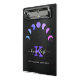 Ce magnifique, unique, design de chou glam comprend des phases du cycle lunaire, y compris le croissant, la moitié et la pleine lune, en turquoise pastel, bleu, violet et rose magenta, disposées dans un arc attrayant contre un arrière - plan de classe de feuille de métal brossé noir gris charbon de charbon. Au-dessous des phases de la lune se trouve un monogramme de lavande personnalisable et un nom personnalisé dans une typographie élégante et tendance de script blanc pour un look cool lettré à la main. Sous le monogramme et le nom est une ligne de texte supplémentaire dans une police sans serif populaire, qui peut être un nom complet ou un autre texte, ou peut être laissé vide si désiré. Vous pouvez personnaliser cet élément en modifiant le monogramme, le nom et le texte du modèle de produit.