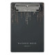 Chic porte - bloc est doté de deux lignes de texte personnalisé en lettrage blanc classique sur un arrière - plan noir souple et riche avec des fils verticaux de fils rose en or faux lumières en cascade du haut. Le design se répète à l'envers. Veuillez noter que ce porte - bloc est une mini-taille; version grandeur nature également disponible dans notre collection Rose Gold Marquee.
