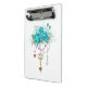 Clé d'or antique aux roses turquoise tendance décorée de feuilles d'or blanc et de perles rose et bleu. Couleur tendance. Rose turquoise. Blanc doré. Tiffany bleu.