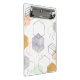 Hex Scatter I de Gabrielle McClure. Des hexagones de formes et de motifs variés dispersés sur un arrière - plan blanc.