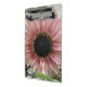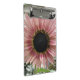 Ce superbe mini porte - bloc dispose d'une belle photo d'un tournesol rose pâle. Le tournesol est naturellement rose et les pétales ont un anneau extérieur rose pâle et un anneau intérieur rose plus foncé. Le milieu où les graines sont noires. Cette photo a été prise dans un jardin.