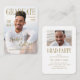 Mini magazine style graduation announcement and invitation feature gold color elegant graceful serif and script name with photos, more grad party details on the back, sophisticated and timeless, Custom it with your own photos and information.