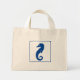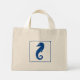 Un sac fourre-tout minuscule est présenté en naturel avec un imprimé hippocampe bleu roi. Customisez cet objet ou achetez tel quel.