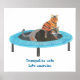 Une façon amusante d'utiliser un trampoline ! Peinture de deux chats adorables, un assis et un allongé, sur un mini trampoline, avec Exercices, imprimés sur des affiches.
