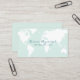 Une carte de contact bleu pâle moderne et basique pour un professionnel élégant... votre nom et votre profession imprimés dans un style de police turquoise foncé, et carte blanche du monde...