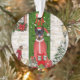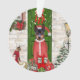 Miniature Pinscher Dog Noël assis à l'extérieur de la maison décorée avec la couronne de Noël, sapin de Noël est une idée cadeau de Noël parfait pour les amoureux de les chiens.