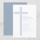 Celebrate a meaningful milestone with this elegant minimal blue First Holy Communion invitation. Featuring a refined linear cross and soft blue striped accents, this design offers a clean, modern interpretation of a timeless religious tradition.