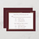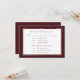 This dark burgundy script on white with a gold and black border is an elegant rsvp card and menu selection card. The back has a dark red background with your names and a gold ampersand. Can be used for weddings, vow renewals or anniversaries