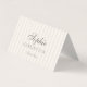 Elegant folded wedding place card featuring soft taupe vertical stripes and refined minimalist typography. Designed in a timeless estate style, this card adds a sophisticated and understated touch to your wedding table setting.