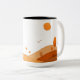 This coffee mug features a minimalist autumn landscape inspired by Scandinavian design, with clean geometric shapes and a warm palette of orange and brown tones. Its calm, balanced composition creates a cozy and relaxing feel, perfect for enjoying coffee, tea, or any warm drink.