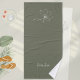 Ground your practice in serenity with this sage green bath towel from the Floral Zen Line Art Collection. The sophisticated ivory botanical design creates a peaceful foundation for your mindful movement or a chic bridesmaid favor for wellness-themed weddings. Personalize the name for a unique wellness gift idea or a thoughtful birthday gift for her. This high-quality bath towel fits perfectly with the matching 16x28 guest towel. ©Susanne Sachers 🌞✈️